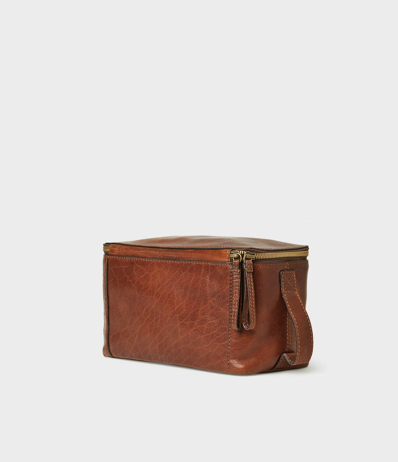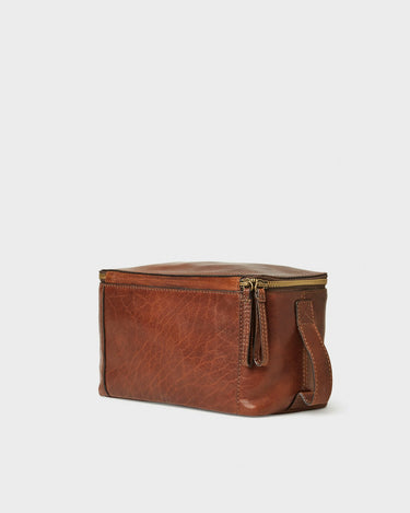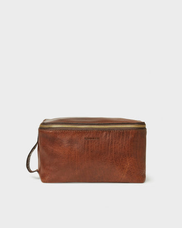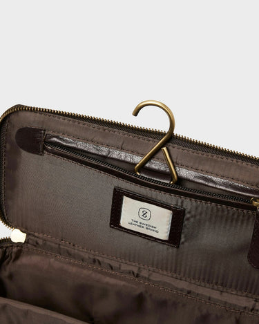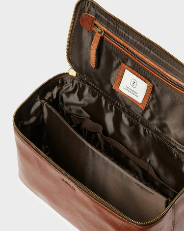 Toiletry bag Barolo by Saddler. Luxurious and spacious male toiletry bag in high quality leather that is perfect for the organized person. The inside has a divider in the middle and the lid has a pocket that closures with a zipper. The lining is made in stain preventing nylon so that you easily can clean it. A handle makes the toiletry bag easy to carry.