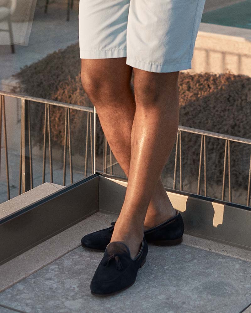 Inspired by classic tailoring, Drill reinvents the classic loafer with a relaxed, contemporary approach. Crafted in soft suede, this version with tassels stands out for its double front stitching — an artisanal detail that adds character to the design. The slim TR sole keeps the silhouette elegant and balanced, ensuring lightweight comfort throughout the day. Versatile and easy to style, Drill naturally adapts to both formal and casual looks.