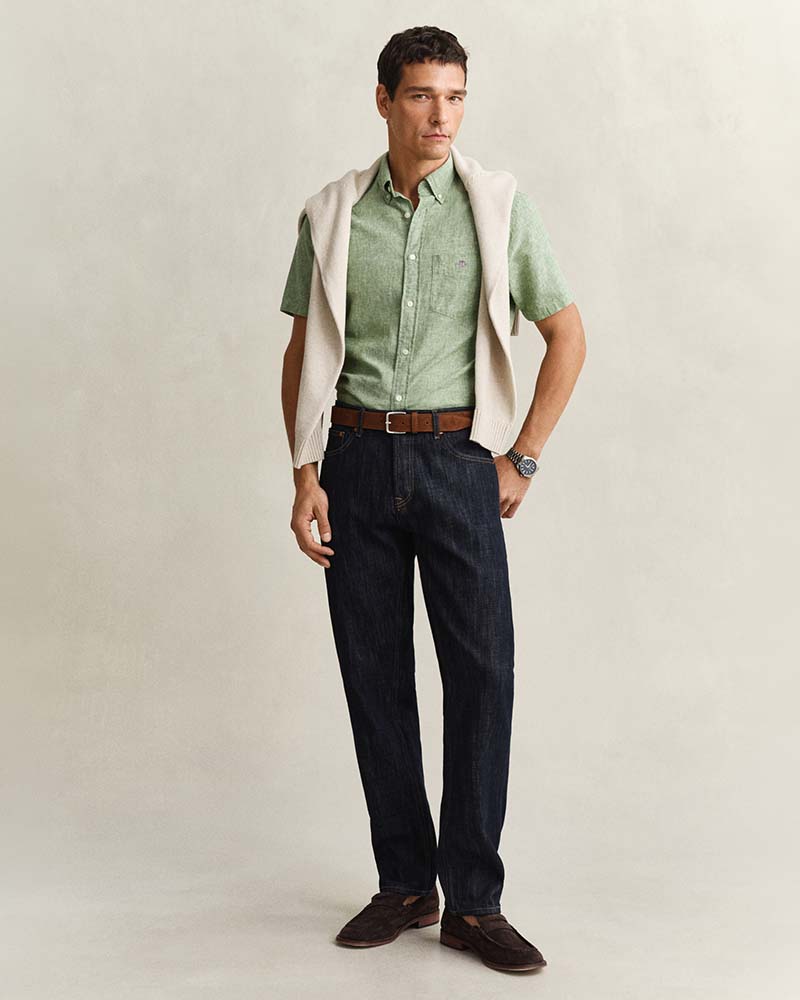 Gant Clothing Regular Fit Cotton Linen Short Sleeve Shirt