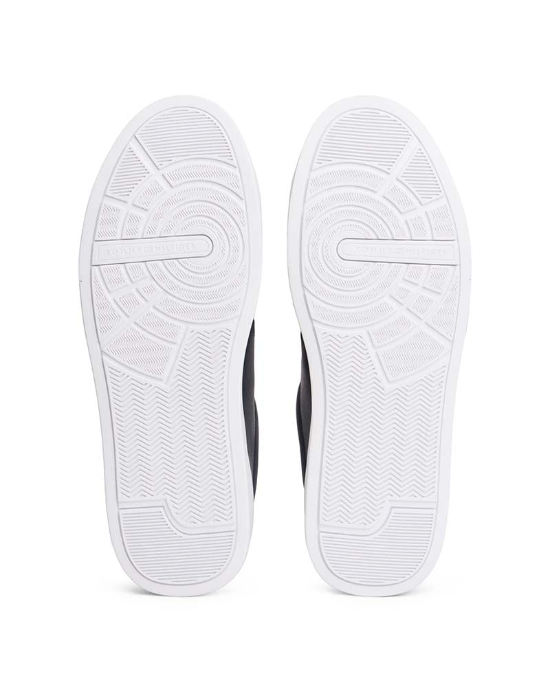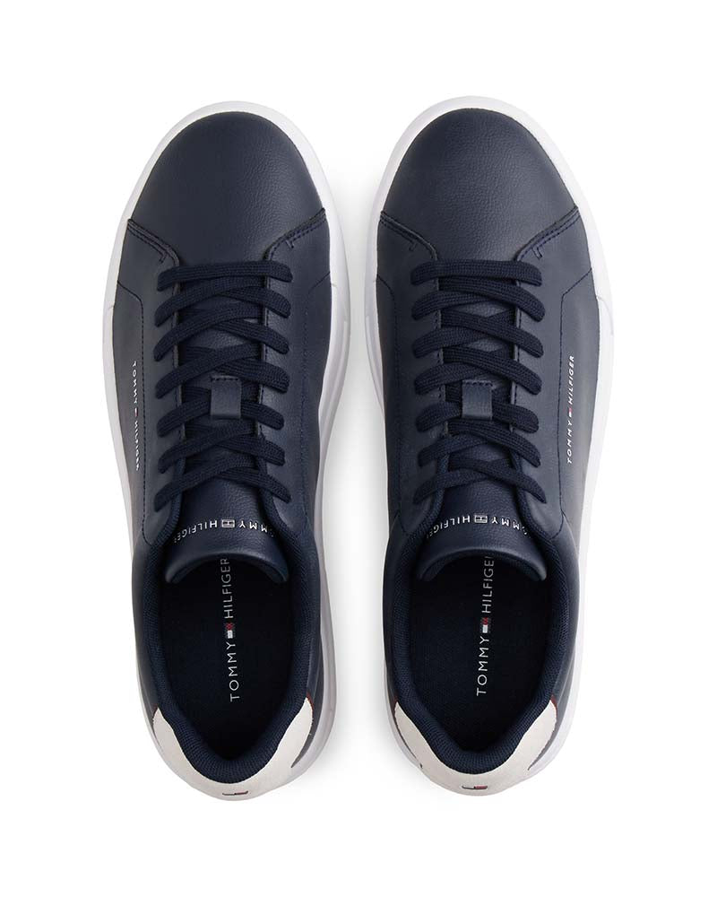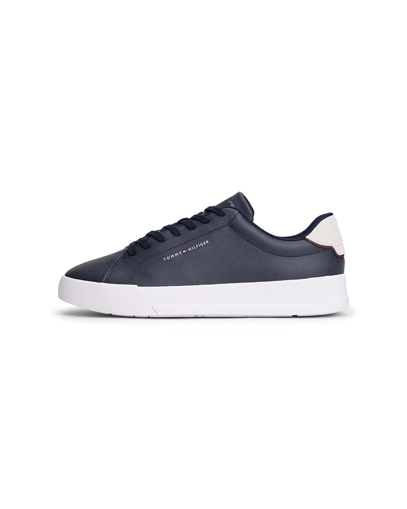 Go for a streamlined look in these coated leather trainers, featuring a classic court silhouette that's elevated by the contrast heel panel.