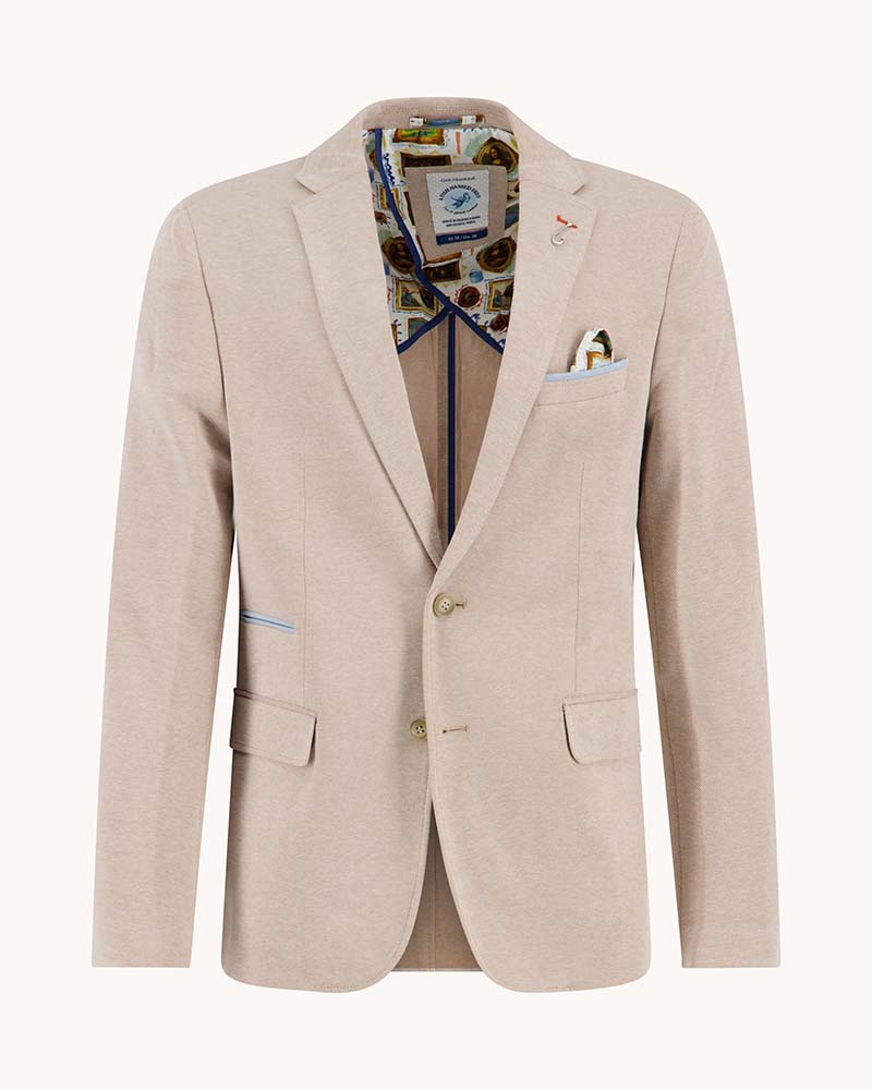 Meet your new go-to summer blazer: the Blazer Piqué by A fish named Fred. Crafted from a breathable stretch jersey piqué fabric, this blazer is designed for movement and comfort, without sacrificing its sophisticated look. The Fred-printed lining, matching pocket square, and contrast buttonholes give it a playful twist that’s unmistakably Fred.