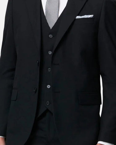 The James black suit becomes a stellar option for your smart events. The combination of premium fibres guarantees a smooth, resilient handle, wear yours with a narrow tie to emphasise the peak lapels and sleek cut.