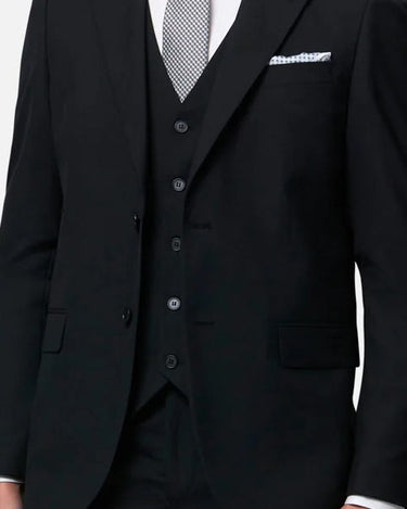 The James black suit becomes a stellar option for your smart events. The combination of premium fibres guarantees a smooth, resilient handle, wear yours with a narrow tie to emphasise the peak lapels and sleek cut.