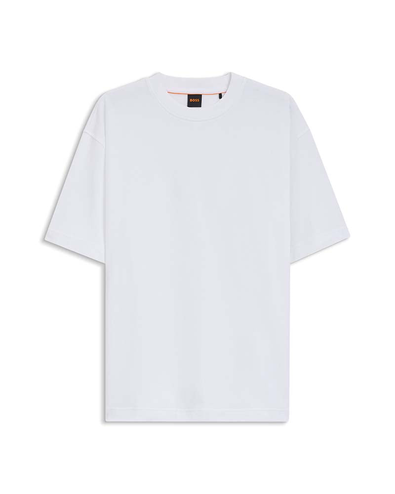 With its roomy cut and weighty feel, this cotton BOSS Menswear T-shirt is a casual essential. Back-neck logo print. High collar.