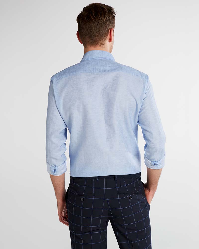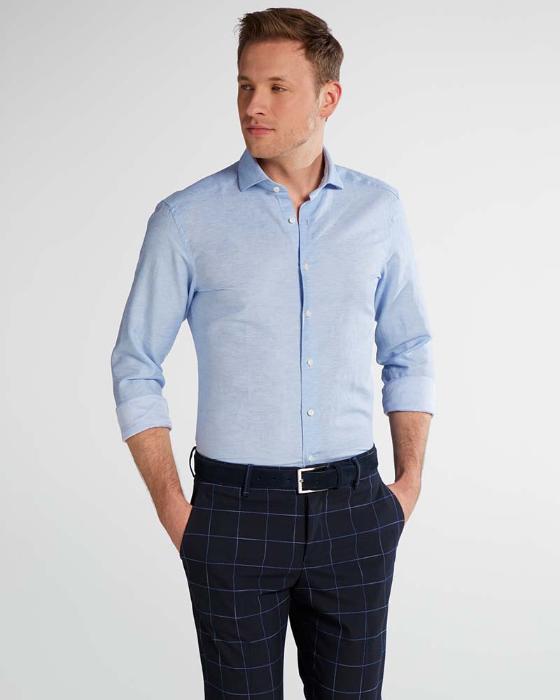 The high-quality, non-iron twill fabric (59% cotton, 41% linen) is light and breathable and feels pleasantly cool against the skin.