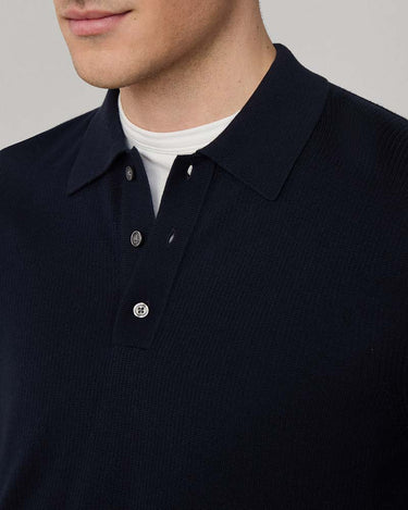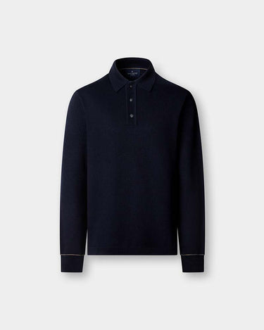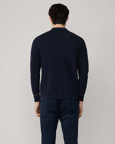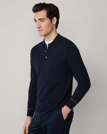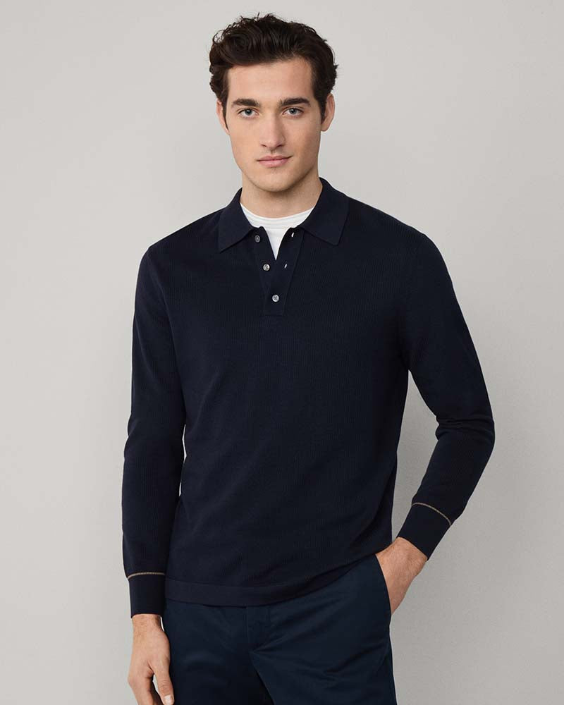 - Long sleeve polo crafted in a textured cotton-silk blend knit