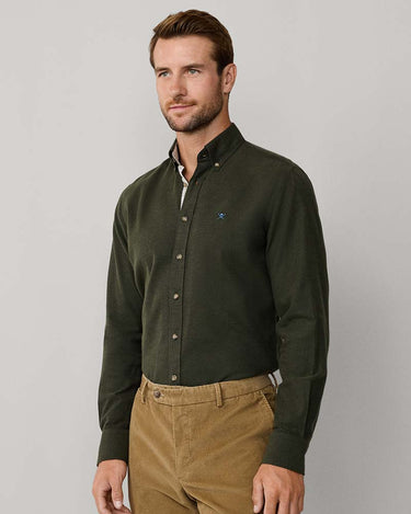 - Faux-horn buttons and embroidered chest logo offer elevated finishing touches