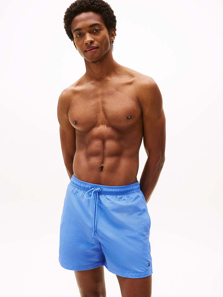 These classic mid-length swim shorts, complete with a flexible drawstring waist and additional back pocket, deliver a timeless poolside look.