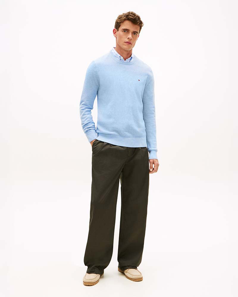 Tommy Hilfiger Flag Embroidery Textured Crew Neck Jumper