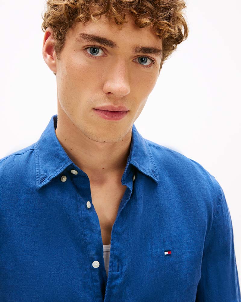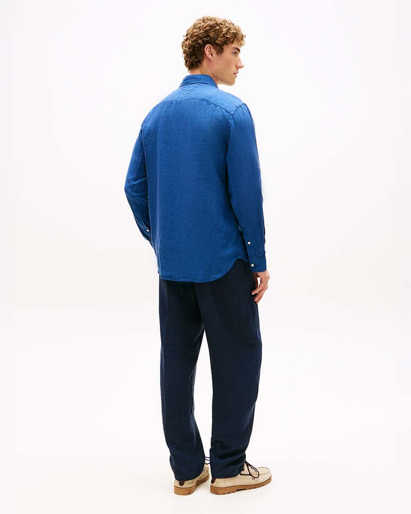 This pure linen poplin shirt is pigment-dyed for vintage appeal, while the button-down collar and embroidery add a refined finish.